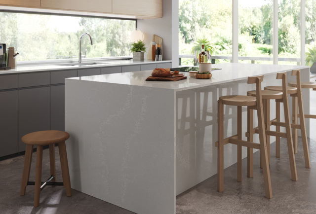 Caesarstone Low Silica minimises the use of crystalline silica in the slab, using a powerful blend of unique minerals, such as feldspar, and recycled materials including up to 30% recycled glass.