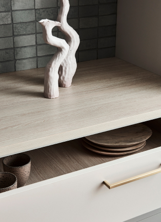 Create a cohesive look with Melteca and Laminex Formica for matching benchtops and cabinetry or incorporating curves.