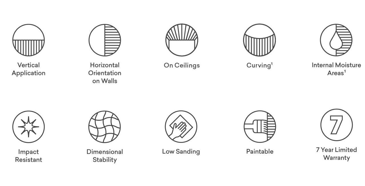 *MR E0 MDF product only. Additional considerations and steps required. Surround by Laminex is prohibited for use in splash zones. Fire Resistant product (E1 MDF FR) is prohibited for use in Internal Moisture Areas and for Curving. Curving should only be undertaken by a person experienced in kerfing and mould making. Follow all instructions outlined in the Fabrication and Installation Manual.