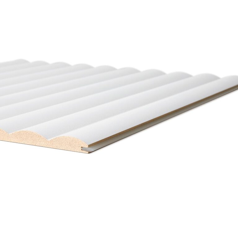 Demi Round 40 is manufactured from 12mm moisture resistant MDF. The reverse side is a flat face sealed with a white Low Pressure Melamine (LPM). It is designed for interior application and is available in two panel sizes.