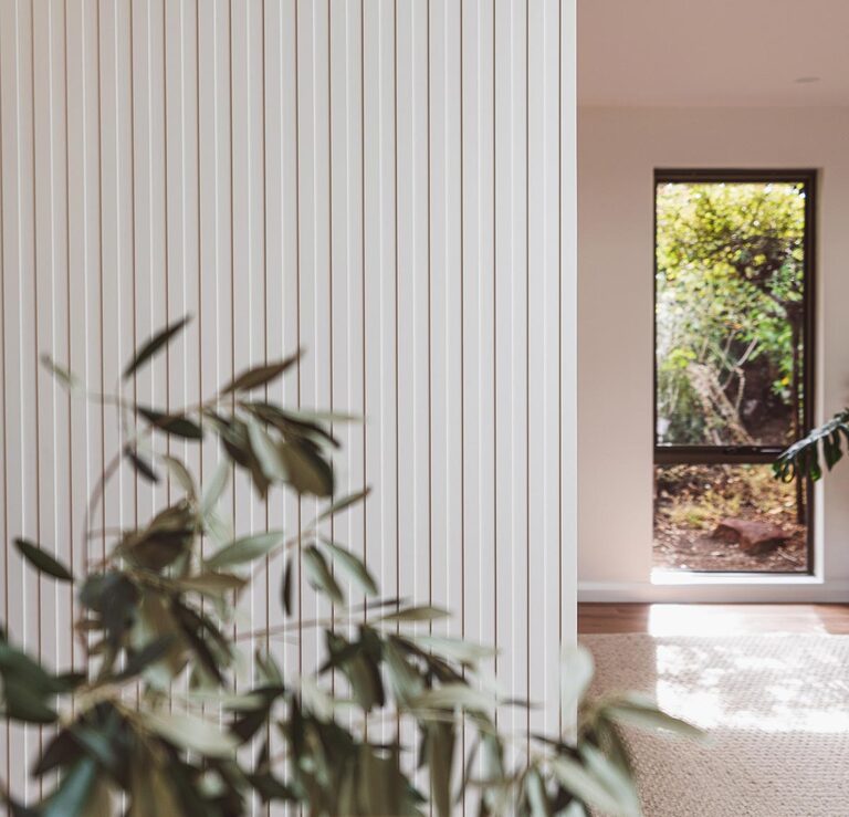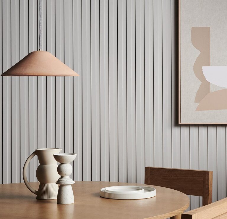 Equally spaced battens and grooves give a sophisticated striped effect.
