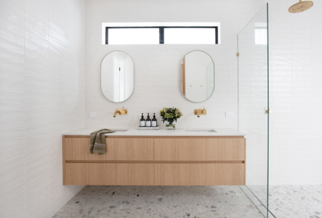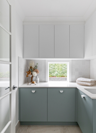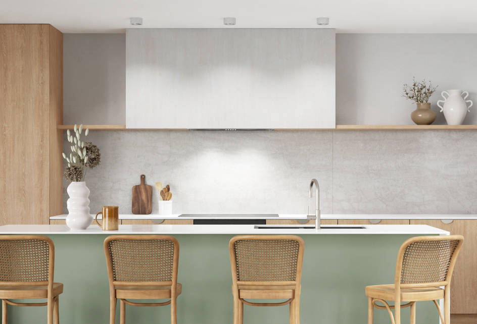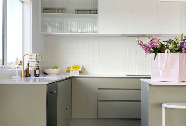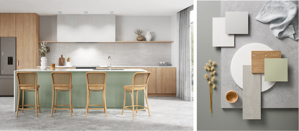 From left to right: 1. Lower cabinetry: Melteca Possum, Designer: Bridget Hope 4. Caesarstone Intense White Benchtop, Designer: Oak and Orange 3. Melteca Bayleaf, Project: Jan Juc home of Chela Edmunds, Photography @nikoleramsay for the Design Files, Cabinet Maker @createfromconcepts, Builder @stewartbuildco 4. Cabinetry: Laminex Woodgrain Collection Sorrel